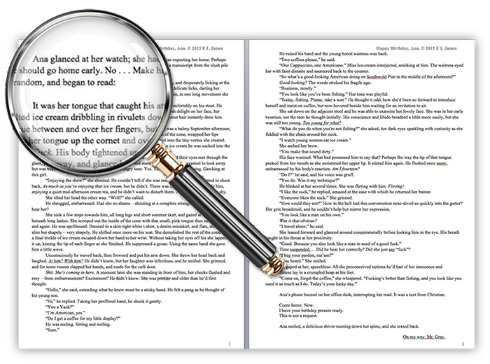 Ana olhou para o seu relógio; ela tinha meia hora antes que Christian a esperasse em casa. Talvez ela devesse voltar mais cedo. Não… Faça com que ele espere. Ela sorriu, puxou um manuscrito qualquer da pilha bagunçada e começou a ler: